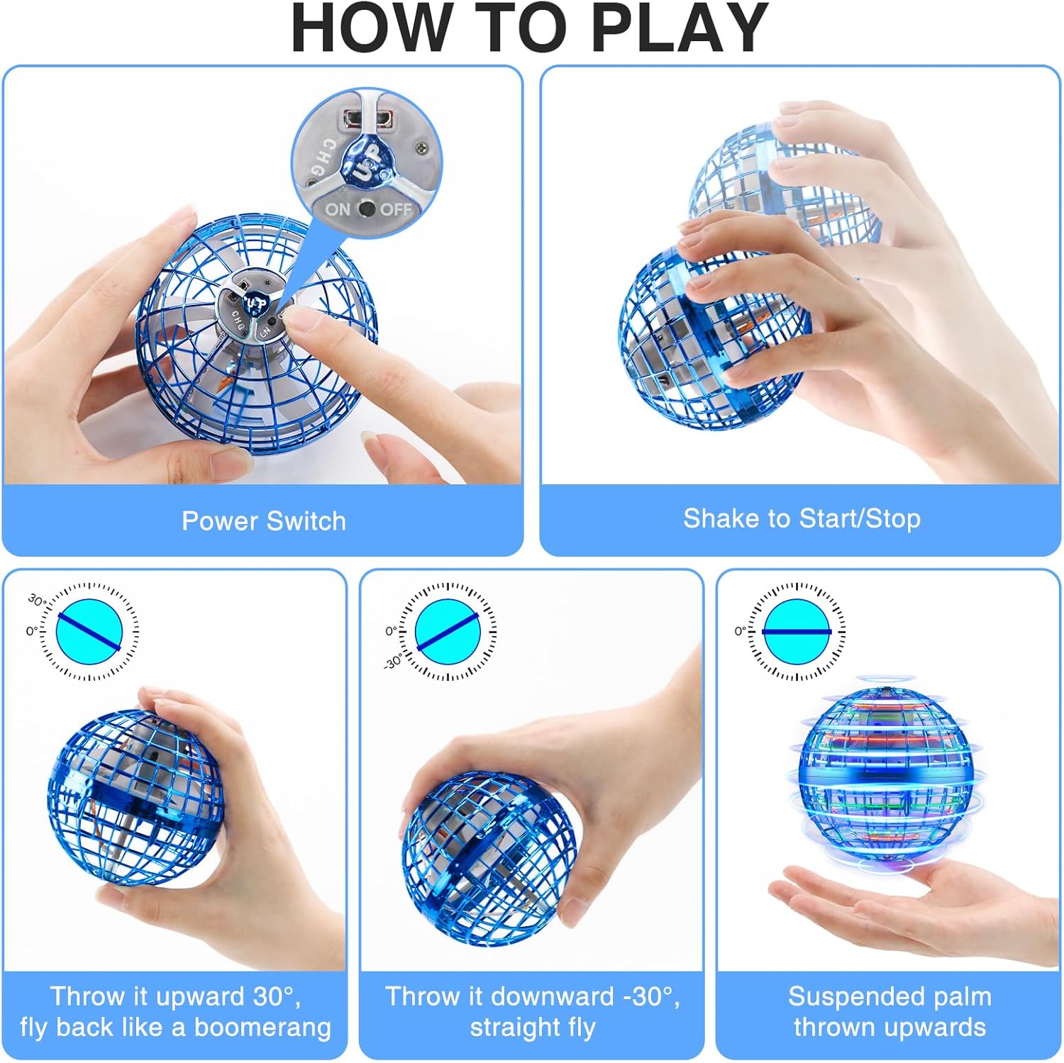 - 2025 Flying Orb Ball with Cool RGB lights】:Experience the ultimate flying adventure with the High-Tech Hand Controlled boomerang ball With Cool RGB Light! Its intelligent flight provides endless fun with various throwing angles and speeds creating unique flight lines and a boomerang effect. The colorful LED light adds an additional cool factor to the toy, especially at night.